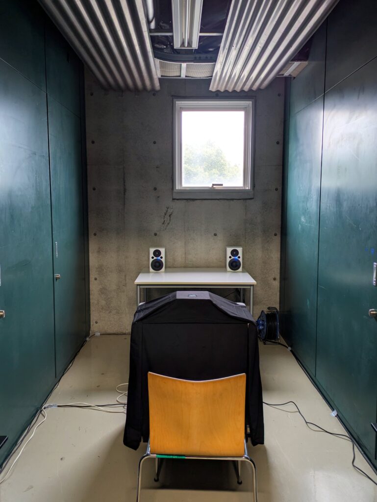 普段は意識にのぼらない自身の身体のゆらぎやありかたを、音によるフィードバックループを通して自覚するための装置である。